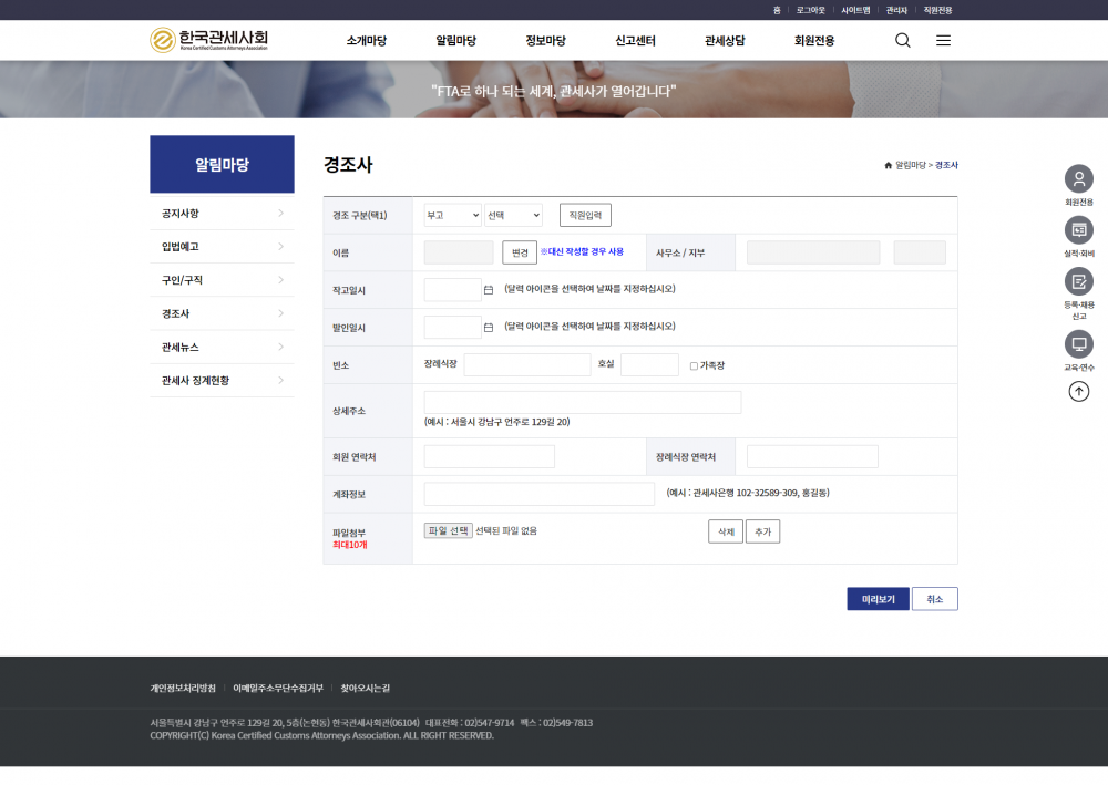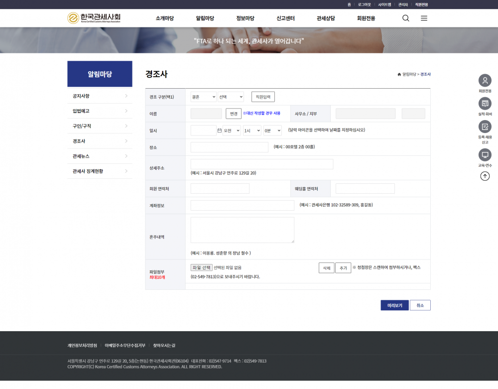 회원 경조사 | 회원(관세사) 경조사 연락방법 안내